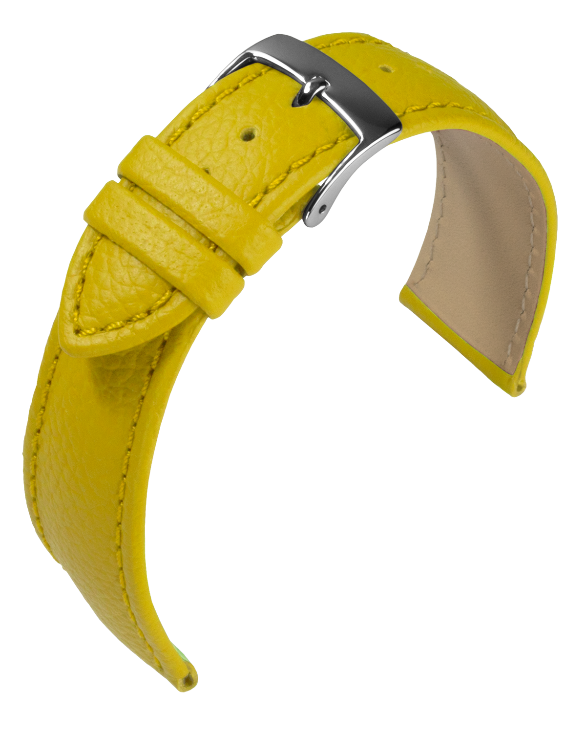 Weiches Rindleder-Uhrarmband mit fein genarbter Oberfläche. Rembordierte Ausführung, leicht gepolstert, hautfreundliches Nubuk-Futterleder und Edelstahl-Dornschließe.
