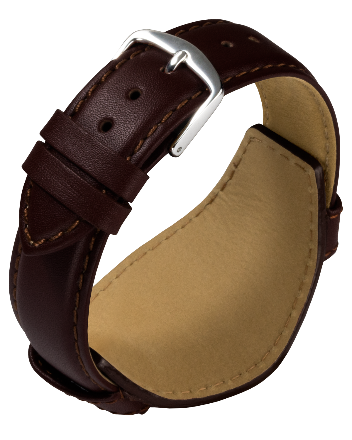 Echtes mattes Kalbleder-Uhrband mit Lederunterlage, hautfreundlichem Futterleder und Aluminium-Dornschließe.