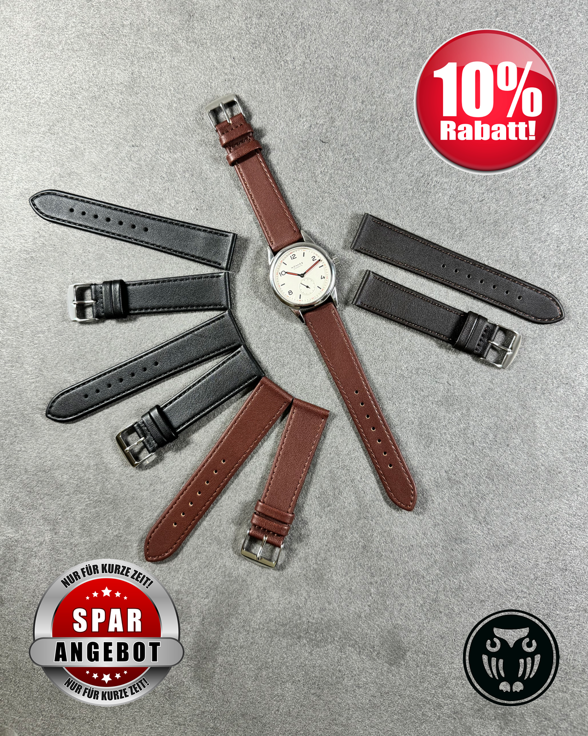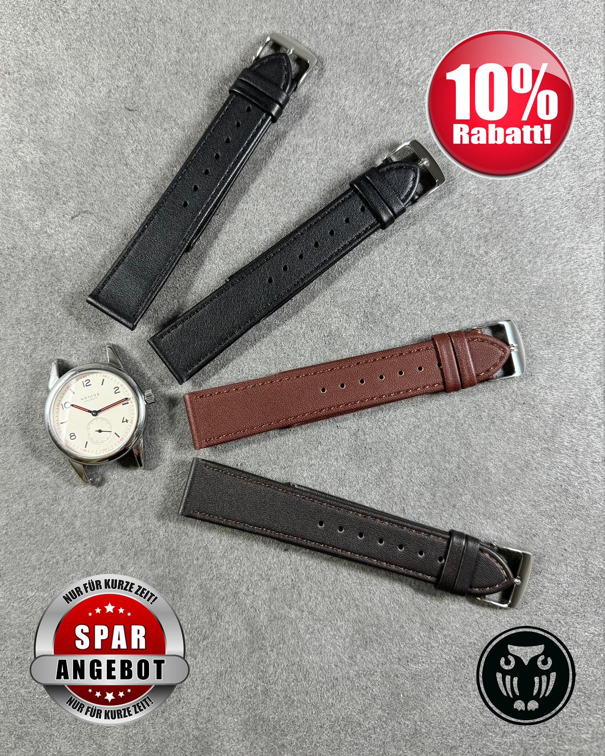 Klassisches Uhrarmband aus besonders weichem Kalbleder. Ungepolsterte Ausführung, rembordierte Kanten, hautfreundliches Nubuk-Futterleder und Edelstahl-Dornschließe.