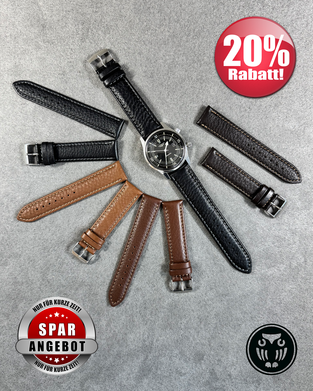 Extra weiches Uhrarmband aus genarbtem Rindleder, mit farblich abgesetzter Naht. Leicht gepolstert, sehr angenehm zu tragen.