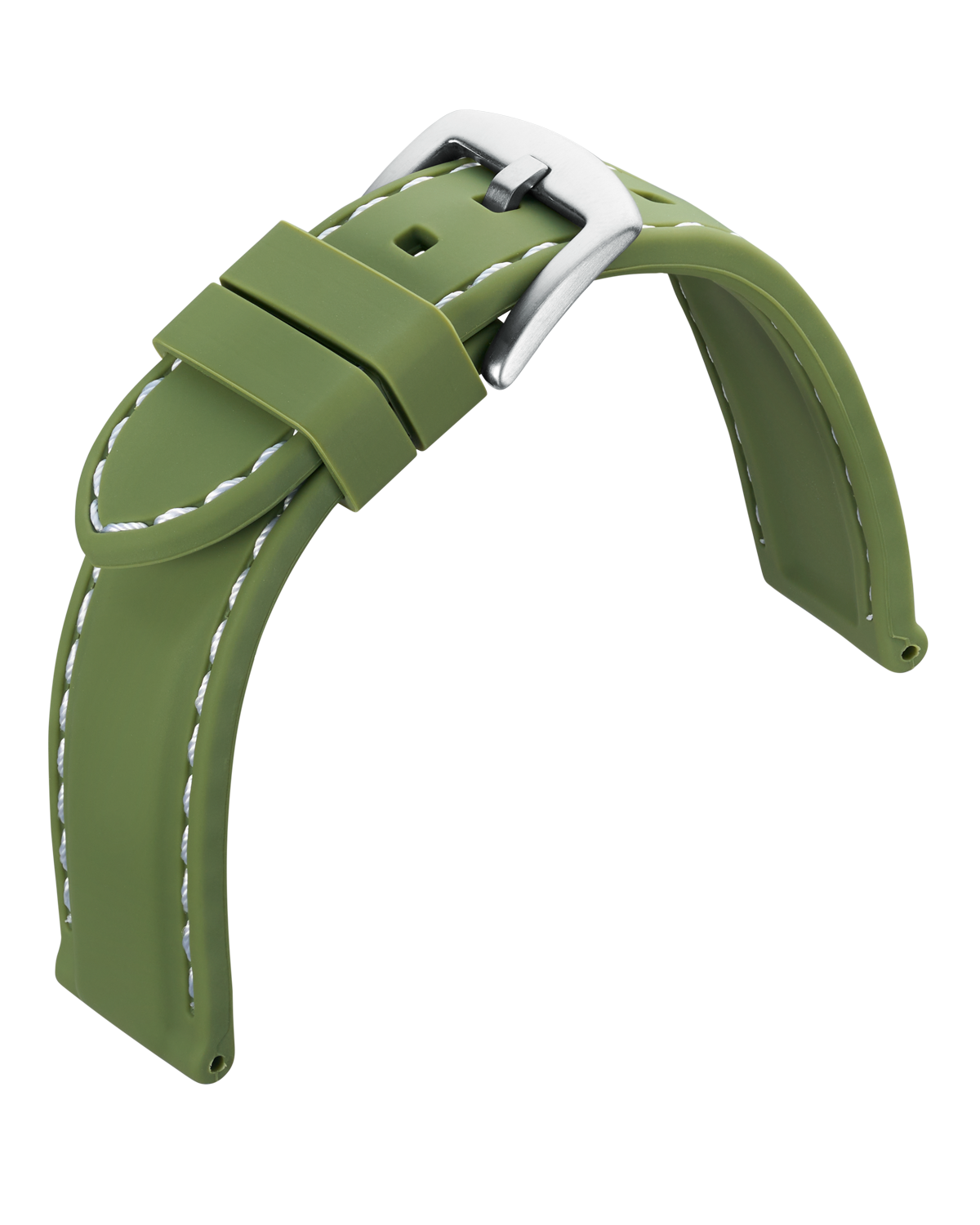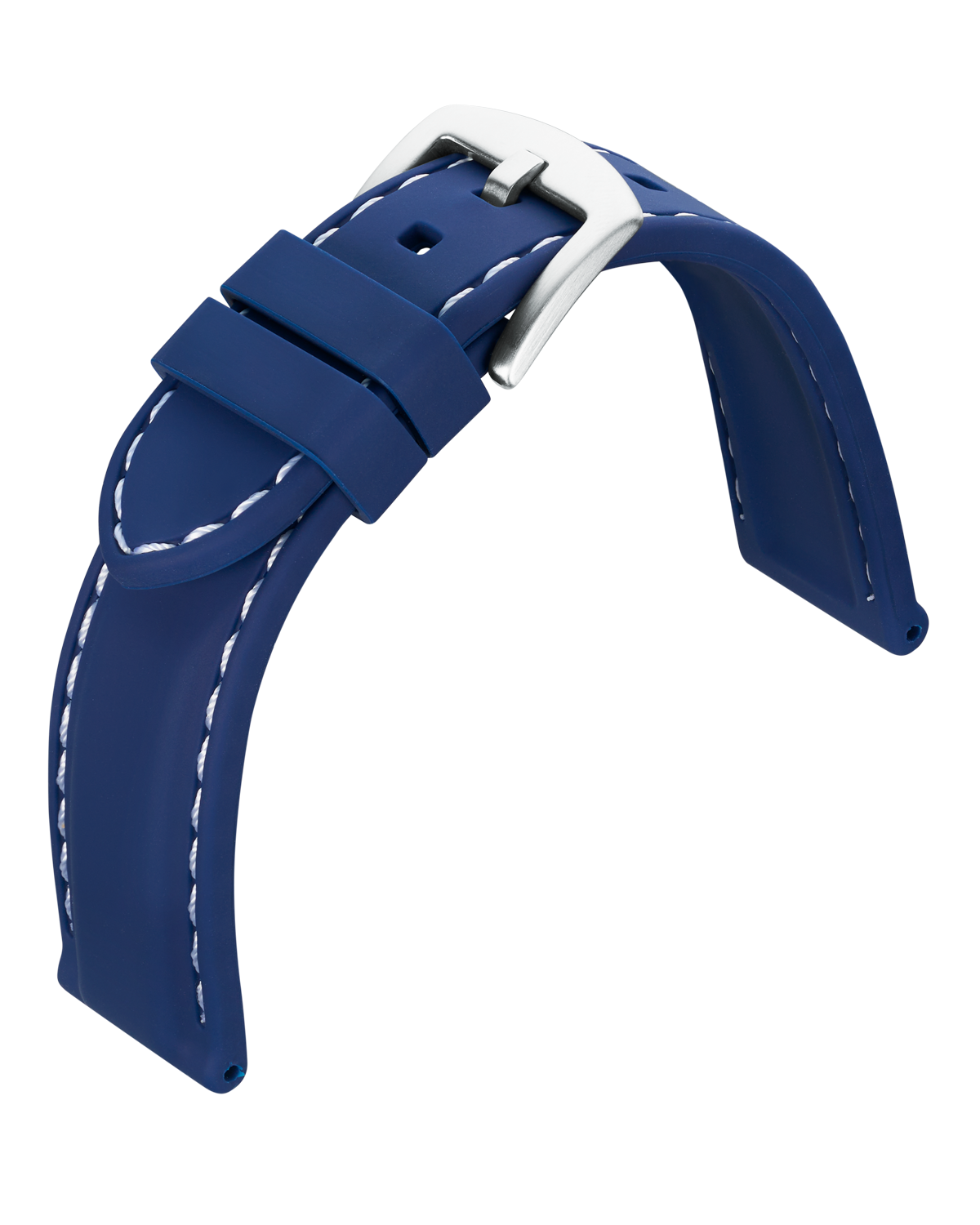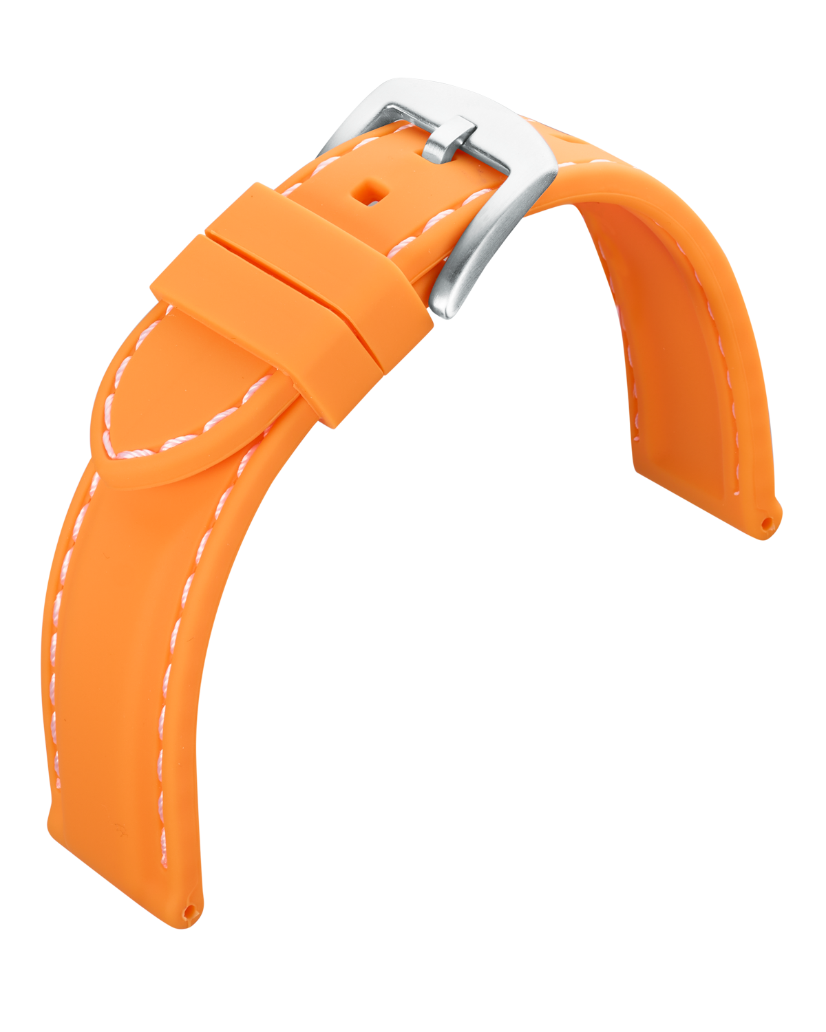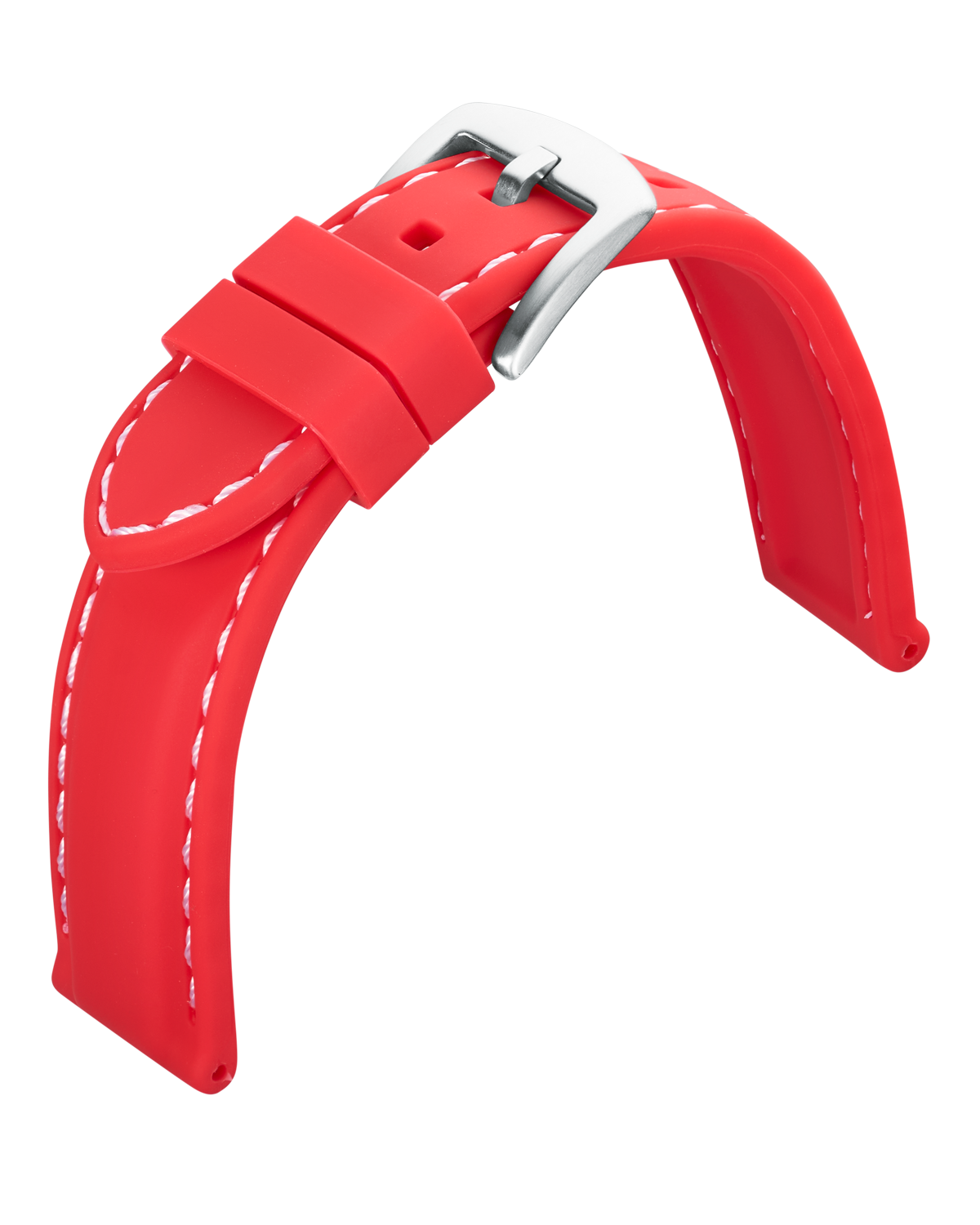 Sportliches Uhrarmband aus Silikon, mit echter Naht und mattierter Edelstahl Dornschließe.